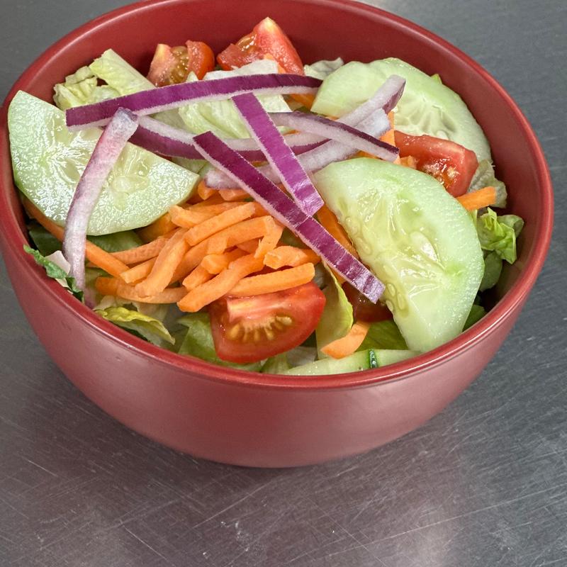 Mixed greens, cucumbers, tomatoes, red onions, carrots | Choice of dressings - Vinaigrette, Italian, Ranch, Honey Mustard