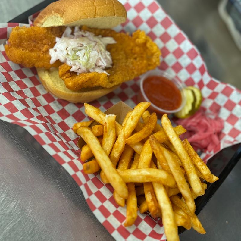 Hand-battered, tossed in our special spices then fried to perfection | You can substitute the fries with any side - no charge