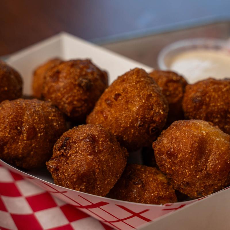Corn fritters are made with whole-kernel sweet corn batter that is deep-fried to a golden brown | Great with our homemade Alabama sauce