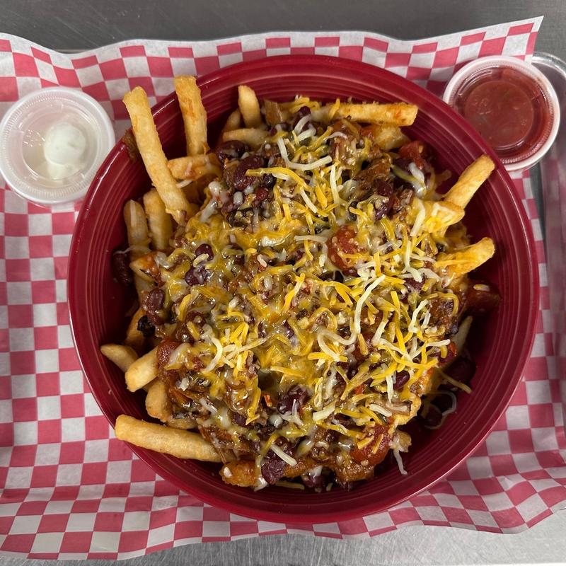 9 hand-battered shrimp served over fries with tarter and/or cocktail sauce